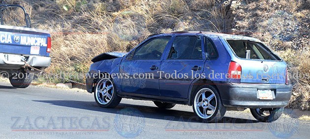 Vetagrande, Zac.- Los tripulantes de un auto Pointer color azul, se llevaron el susto de sus vidas cuando el conductor perdió el control de la unidad presuntamente cuando viajaban a exceso de velocidad rumbo al municipio de Vetagrande.