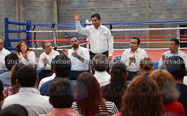 Guadalupe, Zac.-Junto al gobernador del estado, Alejandro Tello Cristerna y el subsecretario de Prevención del Delito a nivel federal, y diversas autoridades de los tres niveles de gobierno, el alcalde de Guadalupe, Enrique Guadalupe Flores Mendoza, inauguró el gimnasio de artes marciales mixtas en la colonia Ojo de Agua de la Palma.