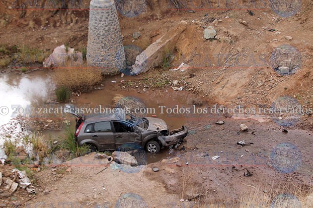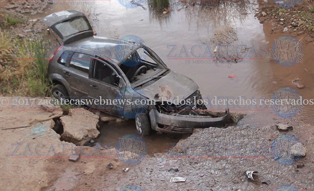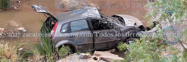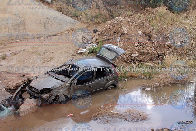 El accidente ocurrió justo cuando comenzaban a caer unas cuantas gotas de lluvia hoy por la tarde en el territorio zacatecano, lo suficiente para que el conductor del auto perdiera el control y cayera por cerca de 25 metros al fondo de un arroyo en la comunidad de la Pimienta con dirección hacia el mineral.