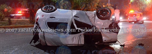 Zacatecas, Zac.– Al filo de las 22 horas, ocurrió un aparatoso accidente sobre el bulevar López Mateos a la altura del hotel Don Miguel con dirección a Guadalupe el que arrojo tres jóvenes lesionados, una de ellas, de gravedad.