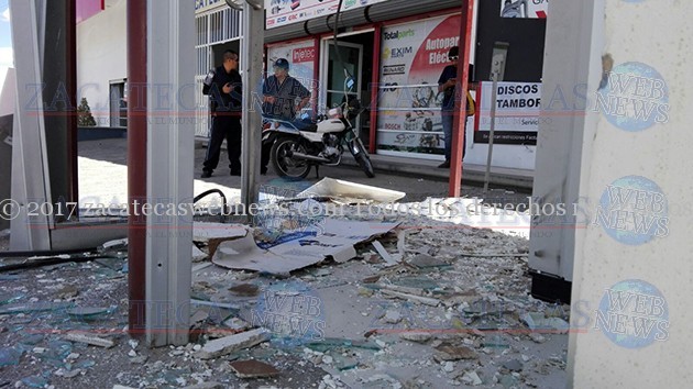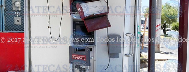 Zacatecas, Zac.- Algunos ladronzuelos intentaron sustraer el efectivo de un cajero automático ubicado frente a las oficinas de Tránsito del estado. La forma poco ortodoxa en que lo intentaron fue utilizando artefactos explosivos que hicieron añicos el lugar, menos el cajero.