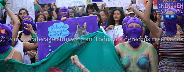 Zacatecas, Zac.- Un nutrido contingente de mujeres, salieron a las principales calles de la ciudad de Zacatecas para manifestar su inconformidad en este día conmemorativo al día de la mujer.