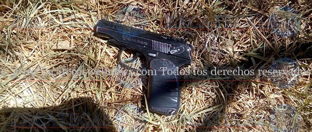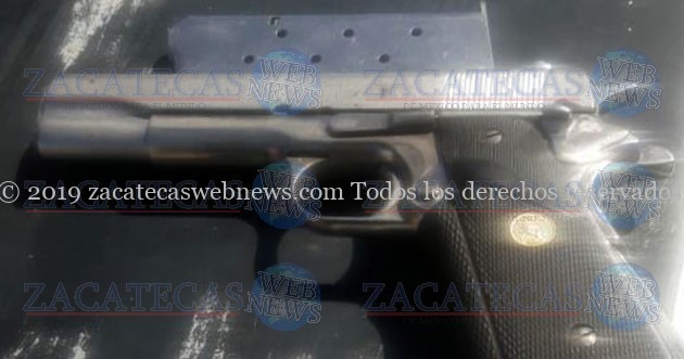 Así mismo por el lugar donde trataron de huir las dos personas, fue realizada un arma de fuego calibre 45 milímetros, por ello tanto el detenido como el arma y el vehículo fueron asegurados y puestos a disposición del Agente del Ministerio Público, para integrarse la carpeta de investigación correspondiente.