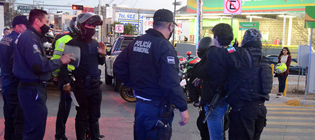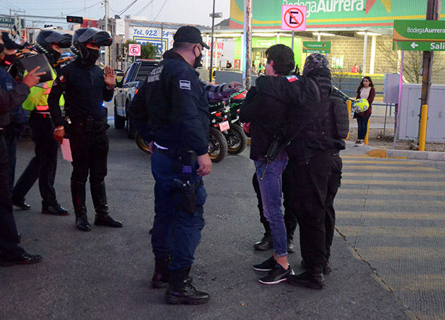 Zacatecas, Zac.– Aproximadamente a las 18 hora con 20 minutos, un motociclista que fue requerido para una revisión de documentos, y placas en el filtro de la policía de vialidad ubicado en la Av. Universidad, fue detenido posterior de empujar a uno de los oficiales.