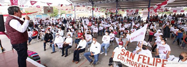 El candidato de Morena insistió en mantener el ritmo de trabajo y a fortalecer la promoción del voto para este 6 de junio 4 de 4 puro Morena, por David Monreal a Gobernador, por Julia Olguín para Diputada Federal, y por Violeta Cerrillo o Roxana Muñoz a Diputadas Locales de los Distritos 3 y 4, respectivamente, “y por un servidor para Presidente Municipal», finalizó.