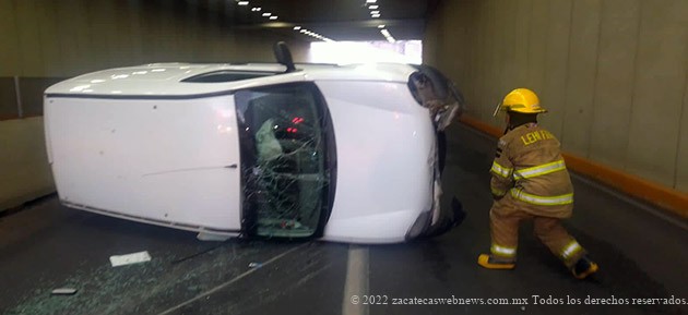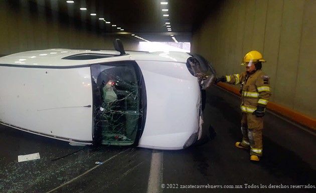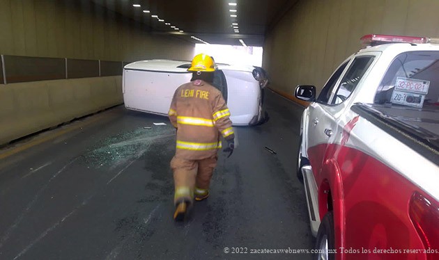Guadalupe, Zac.– Bomberos y personal de la Unidad de Urgencias Médicas de la Coordinación Protección Civil Estatal atendieron un accidente vehicular tipo choque contra muro de contención en hechos que ocurrieron en el túnel de la Calzada Solidaridad, bajo la Avenida Pedro Coronel en el municipio de Guadalupe en Zacatecas.