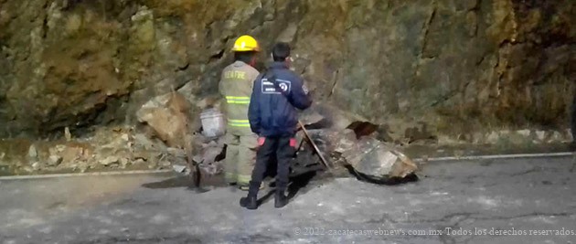 La Coordinación Estatal de Protección Civil emite una alerta de precaución para automovilistas y transeúntes en atención a un deslave de piedras que ocurrió luego de la pertinaz lluvia que se dejó sentir en el periférico Paseo a la Bufa a un costado del Cerro del Grillo.