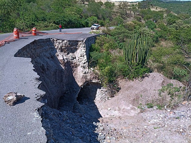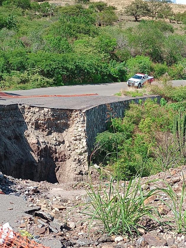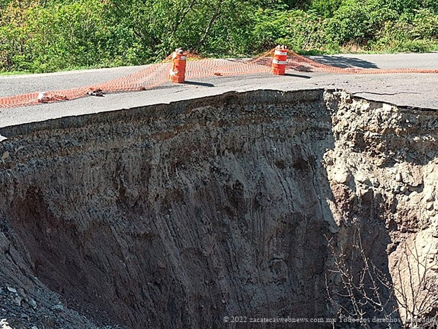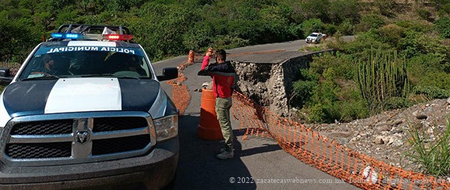 Mezquital del Oro, Zac.- En la cabecera municipal de Mezquital del Oro que se localiza aproximadamente a 247 kilómetros al sur de la capital de Zacatecas la Unidad de Protección Civil de esta demarcación con el apoyo de la Coordinación Estatal y la Secretaria de Obras Públicas del Gobierno de Zacatecas tomaron conocimiento este sábado de una afectación importante en la estructura de la carretera que conecta a esta municipalidad a la altura de la comunidad de Palo Verde.