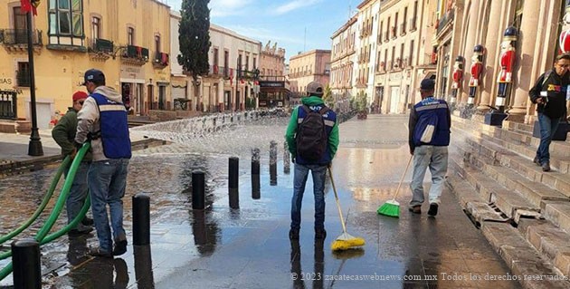Zacatecas, Zac.– Desde las primeras horas del 2025, el Departamento de Servicios Públicos del Ayuntamiento de Zacatecas desplegó un operativo de limpieza intensivo en el Centro Histórico, para mantener la ciudad en orden tras las festividades decembrinas.
