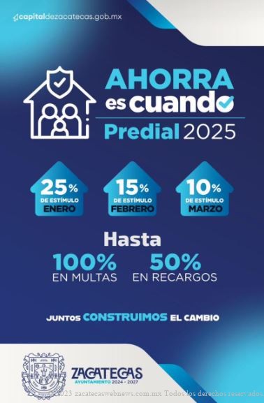 Zacatecas, Zac.– El Gobierno Municipal de Zacatecas invita a la ciudadanía a cumplir con el pago puntual del impuesto predial, ofreciendo atractivos estímulos durante los primeros meses del año.