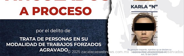 Zacatecas, Zac.– El equipo de investigación adscrito a la Fiscalía de Alto Impacto, logró la vinculación a proceso por el delito de Trata de Personas, en su modalidad de Trabajos Forzados, en contra de Guadalupe “N”, Ariana “N”, Karla “N”, José “N” y Alberto “N”, a quienes se les impuso medida cautelar de prisión preventiva.