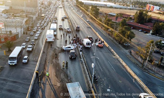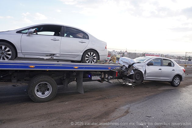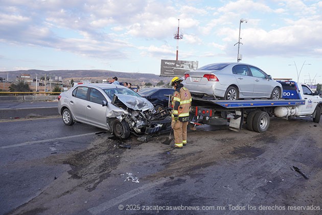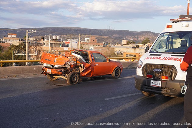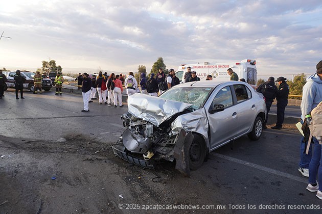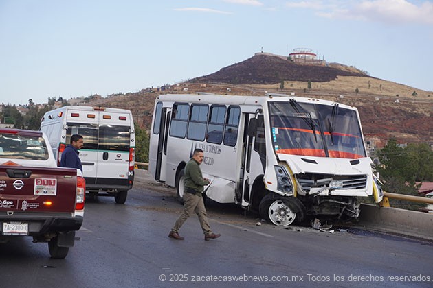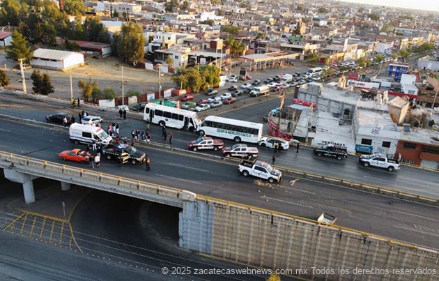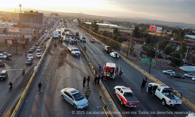 Guadalupe, Zac.- Minutos antes de las siete horas de este jueves, se registró un aparatoso accidente en el que participaron por lo menos seis unidades automotrices, incluyendo dos del autotransporte público en hecho ocurridos sobre el puente vehicular arriba del crucero a Sauceda de la Borda.