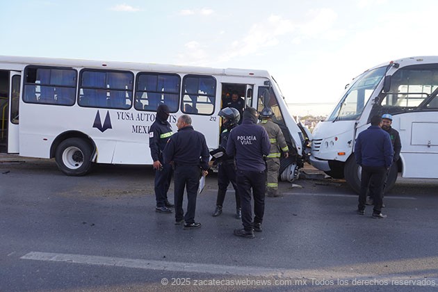 Personal de la Coordinación Estatal de Protección Civil en conjunto con protección civil municipal de Guadalupe, personal de remesa y personal de Cruz Roja mexicana, atendieron el accidente donde se ve involucrado, dos autobuses de pasajeros y cuatro vehículos particulares de los cuales resultan seis personas lesionadas estables sin lesiones que pongan su vida.