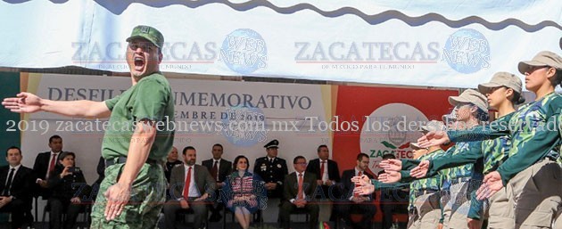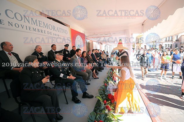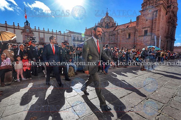Zacatecas, Zac.- En el desfile conmemorativo del Aniversario 109 de la Revolución Mexicana reunió a más de 5 mil 200 personas de distintas instituciones educativas, gubernamentales, de seguridad y protección civil. Entre ellas estuvieron 42 escuelas, con 4 mil 220 alumnos y 300 docentes, 682 elementos de las Policías Estatal, de Seguridad Vial, Metropolitana, de Proximidad, Protección Civil y Cruz Roja, así como de la Guardia Nacional. Con un colorido transitar de los contingentes, se dio paso a la Banda Sinfónica del Estado, escoltas, bandas de guerra, instituciones educativas, de seguridad pública, dependencias de gobierno, así como de la asociación de charros.