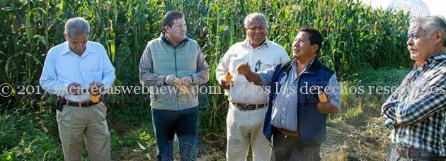 Adolfo Bonilla Gómez se refirió a los beneficios de los paquetes del Centro de Innovación Tecnológica Mano Amiga y realizó un recorrido por parcelas demostrativas de Villanueva, Fresnillo y Calera, donde observó la incorporación de nuevas tecnologías en la siembra, que se traduce en mejores rendimientos.