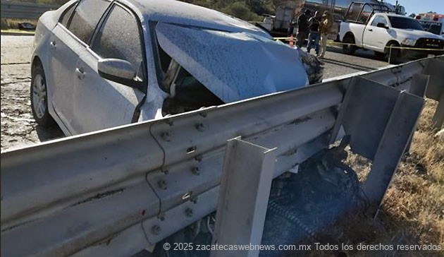Zacatecas, Zac.- Paramédicos y rescatistas de la Coordinación Estatal de Protección Civil acudieron minutos antes de las siete horas de este miércoles a brindar atención a un accidente vehicular tipo frontal registrado sobre la carretera 45D, a la altura del kilómetro 74+200, donde participaron un vehículo particular y un tractocamión.