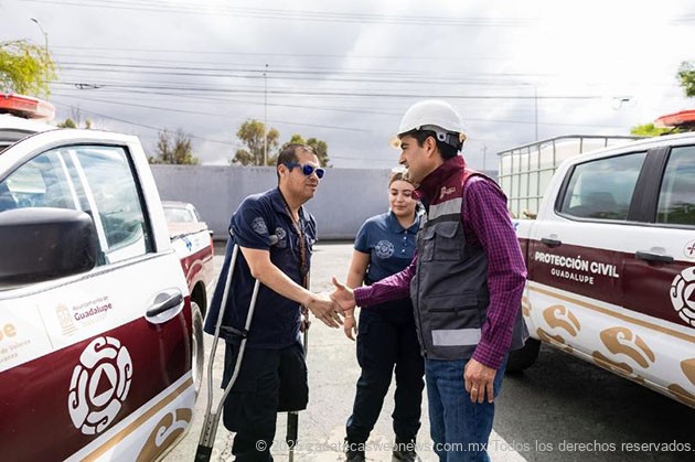 “Debemos cuidar a quienes nos cuidan”, indicó el alcalde guadalupense en la supervisión, comentando asimismo que el personal de trabajo de Protección Civil está a disposición para conocer y atender todos los reportes surgidos, y así minimizar los daños y asegurar una operación continua y segura.