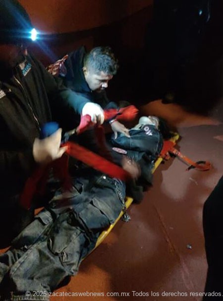 Al sitio acudieron elementos de Protección Civil Municipal de Zacatecas, bajo el mando de Luis Felipe Santos Quintanilla, quienes realizaron maniobras de rescate y estabilización, logrando trasladar al joven en estado crítico a un centro hospitalario para su atención médica especializada.