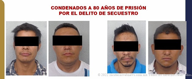 noviembre - 7 - 2022 Reporter: ZACATECASWEBNEWS Comentarios desactivados en CONDENAN A 80 AÑOS DE PRISIÓN A CUATRO PRESUNTOS SECUESTRADORES