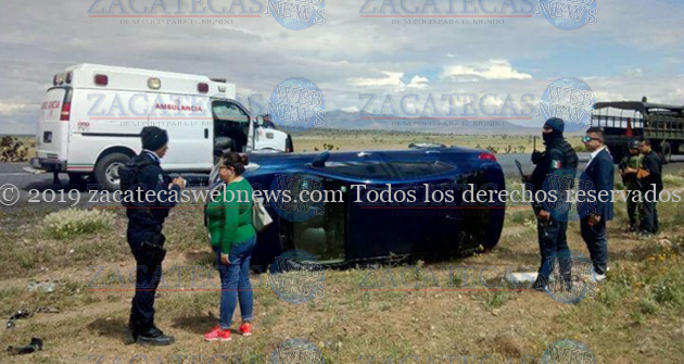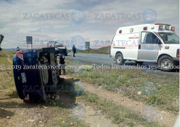 Zacatecas.- La tarde de este domingo se desarrolló un accidente tipo salida de camino y volcadura en la carreta de las Arcinas donde participo una Nissan Versa al que le estallo un neumático viniendo la volcadura.