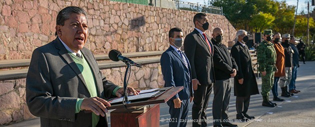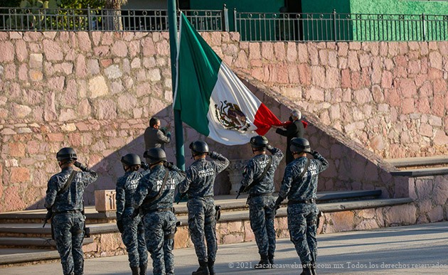 También orador en los Honores a los símbolos patrios, el Secretario de Seguridad, General Adolfo Marín, dijo que la lealtad de las instituciones ha permitido sacar adelante a este país mediante hombres y mujeres comprometidos con el bienestar del pueblo y, en ese tenor, aseguró que se continuará en Zacatecas con el fortalecimiento de los lazos de cooperación entre policías, Guardia Nacional y el Ejército.