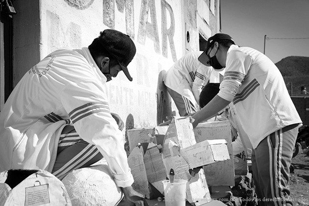 Por organización del grupo, hay áreas de diseño, armado y vestimenta para elaboración de las piñatas. El cartón lo compran a 4 pesos el kilogramo en Villa Hidalgo, allá también compran los pliegos de papeles de china y crepé. En La Ballena, instalaron un centro de acopio y los pobladores donan libretas usadas o libros de texto gratuito, que se usan para el forrado de los diseños de cartón.