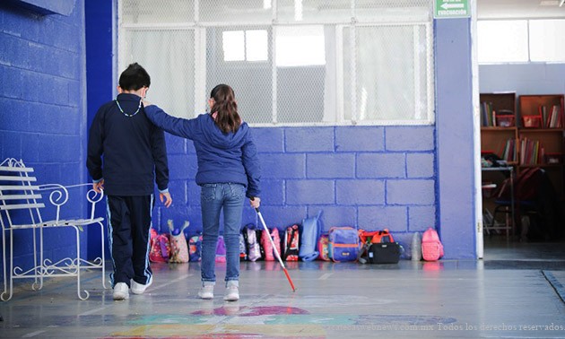 Zacatecas, Zac.- La acústica del domo de lámina facilita que el choque de la roseta de un bastón blanco le permita saber a Valentina, una niña ciega que cursa el tercer año de primaria, que está caminando en uno de los dos patios de su escuela.
