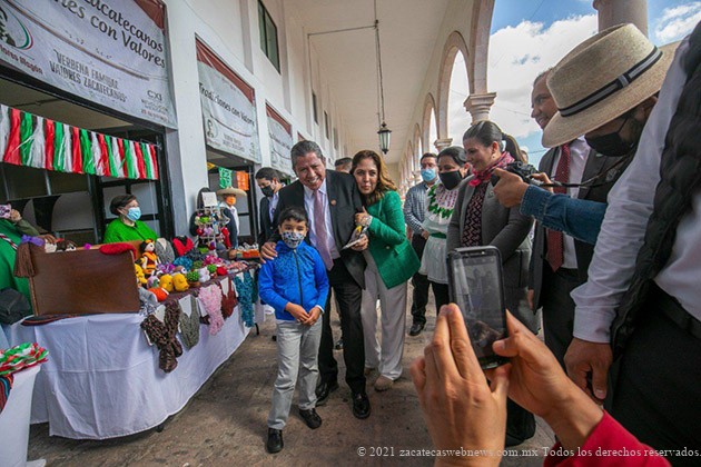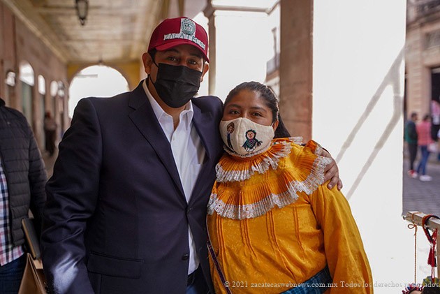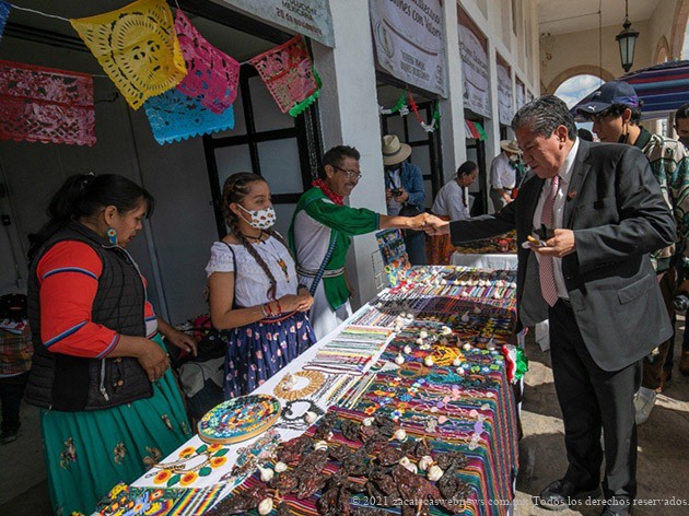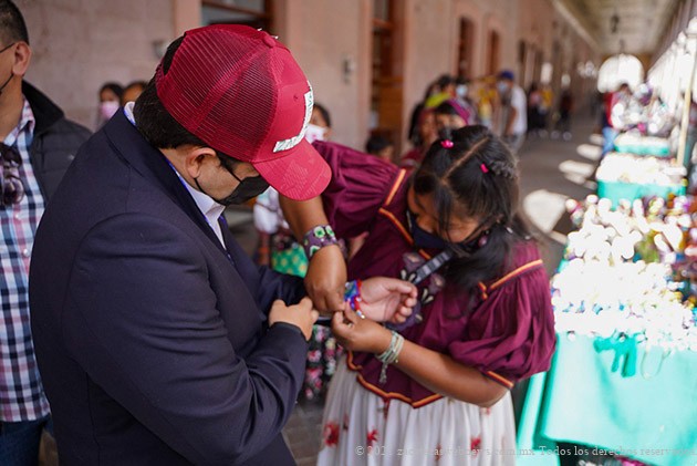 El presidente municipal de Zacatecas, Jorge Miranda Castro recorrió este fin de semana los puestos para refrendar su apoyo a la comunidad wixáricas, quienes realizan artesanías con pasión y dedicación.