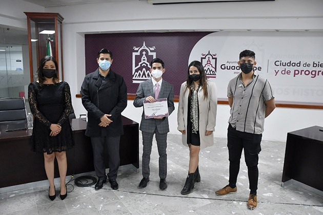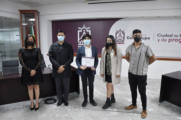Guadalupe, Zac.- Con el objetivo de reconocer el talento guadalupense e incentivarlos a que sigan haciendo proyectos trascendentes para el municipio, el Ayuntamiento de Guadalupe, que preside el alcalde Julio César Chávez Padilla, premió a 5 jóvenes destacados en el Premio Juvenil ‘Hagamos Historia’ 2021.