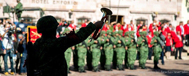 Las vialidades de Zacatecas se inundaron de los colores de la Bandera Nacional y los sonidos de las bandas de guerra de los centros educativos y del Ejército Mexicano, para rememorar uno de los movimientos transformadores de la patria, como lo es la Revolución Mexicana de 1910.