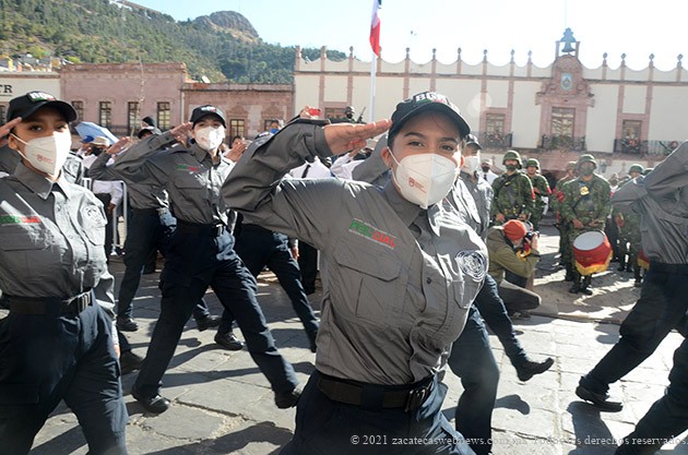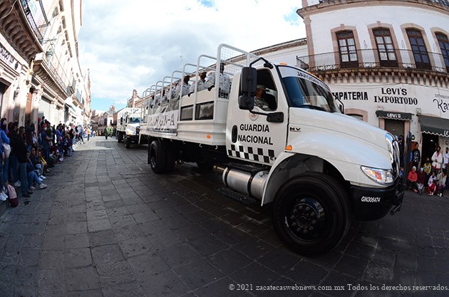 Con el agrupamiento de la Guardia Nacional, participaron cuatro banderas de guerra, 162 oficiales, tres motocicletas, cuatro radio patrullas y dos vehículos del Plan Guardia Nacional.