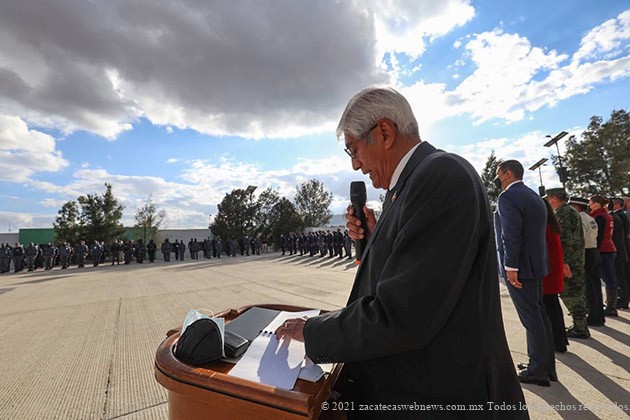 Señaló que la ciudadanía será un elemento primordial en la estrategia de construcción de paz y se comprometió a hacer que el cuerpo de policías esté a la altura del reto que se enfrenta para recuperar el prestigio de la corporación, así como salvaguardar la vida, las libertades, la integridad y el patrimonio de las y los zacatecanos.