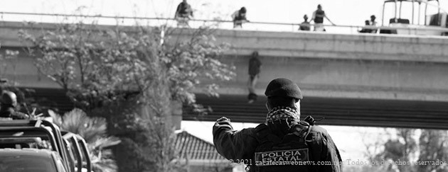Se solicitó la intervención del personal forense de la Dirección General de Servicios Periciales para el procesamiento del lugar, quien confirma que se trata de 10 víctimas, nueve de ellas suspendidas en un puente vehicular ubicado en la carretera federal 45, en dirección a Luis Moya y una más que fue localizada en la cinta asfáltica.