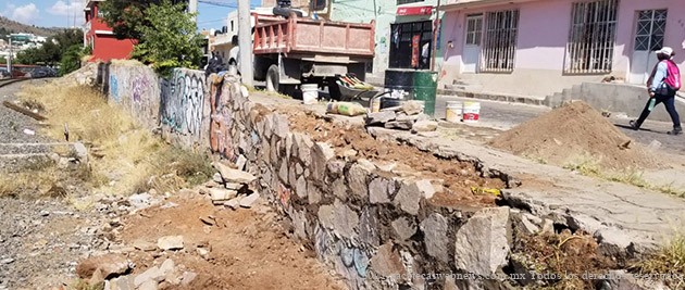 Asimismo, se realizaron otras acciones como la construcción del muro de contención en la calle Ferrocarril, de la colonia Francisco E. García.