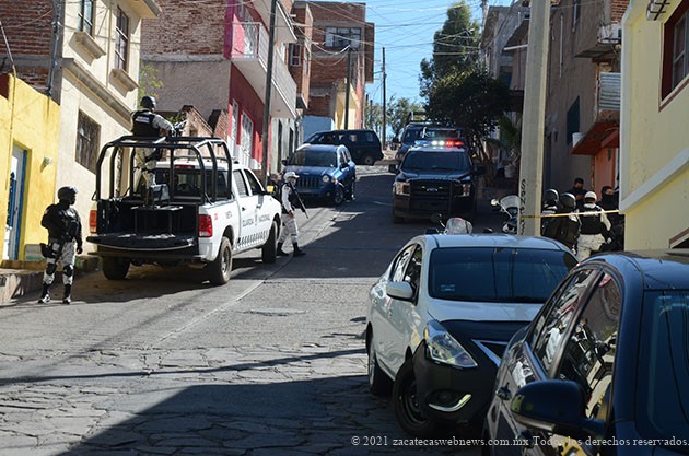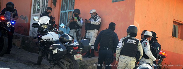 El lugar fue acordonado por uniformados de los tres niveles de gobierno quienes brindaron apoyo a los peritos de la Fiscalía General de Justicia del Estado de Zacatecas.