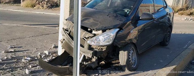 Guadalupe, Zac.- La mañana de este día ocurrió un choque contra un objeto fijo sobre la vialidad que conduce a Martínez Domínguez. Los protagonistas del accidente fueron por lo menos dos ladrones que habrían sustraído la unidad de la ciudad de Zacatecas y en su desesperación por huir de las autoridades, impactaron la unidad contra un poste de alumbrado público.