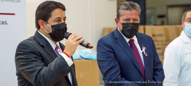 Zacatecas, Zac.- Este miércoles, el alcalde capitalino, Jorge Miranda Castro acompañó al gobernador del estado, David Monreal Ávila a la entrega de equipo médico en el Hospital General de Zacatecas ‘Luz González Cosio’.