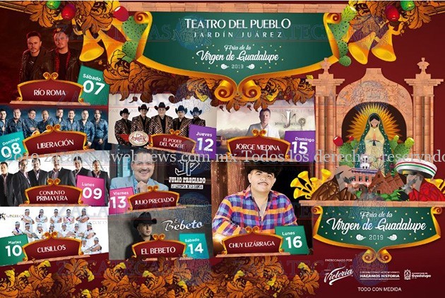 Guadalupe, Zac.- Julio César Chávez Padilla, alcalde de Guadalupe, presentó el cartel, las candidatas a reina, además del programa artístico de la Feria Estatal de la Virgen de Guadalupe 2019, que se llevará a cabo del 6 al 16 de diciembre donde la ciudadanía siempre lo ha pedido, en el Jardín Juárez de Guadalupe, pues es de suma importancia conservar las tradiciones de los guadalupenses.