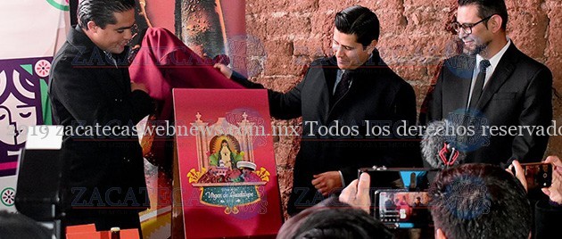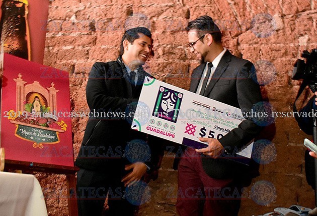 El alcalde, Julio César Chávez y Juan Carlos Enríquez Ávalos, también develaron el cartel conmemorativo de la edición 2019 de la Feria de la Virgen y premiaron al ganador, José Manuel Rosales, quien diseñó el cartel donde se plasmaron los elementos característicos de Guadalupe, rescatando las tradiciones y cultura.