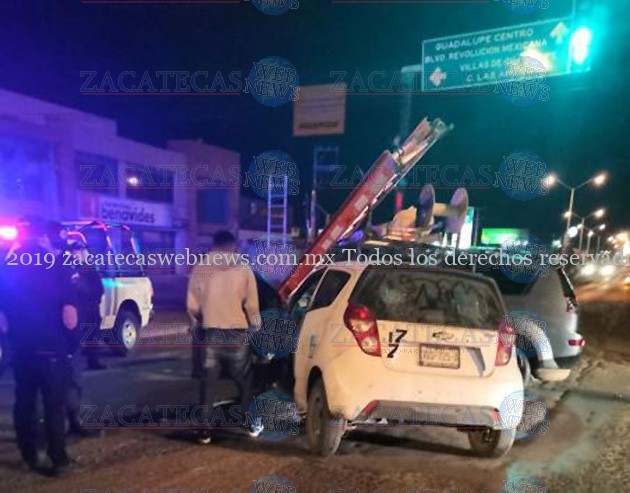 Guadalupe, Zac.- Al filo de la una de la mañana de este domingo, ocurrió un aparatoso accidente en la Avenida la Fe, metros antes de la vialidad siglo XXI cuando una camioneta familiar color café, sin motivo aparente hasta el momento, se quedó varada en medio de la calle lo que provoco que los ocupantes de un auto de una empresa cablera, impactaran irremediablemente en uno de los costados.