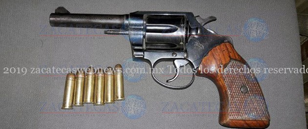 Zacatecas.- En una comunidad del Municipio de Zacatecas, elementos de la Policía Estatal Preventiva (PEP) aseguraron a un hombre que se encontraba en posesión de un arma de fuego calibre 38 especial, sin el permiso correspondiente.