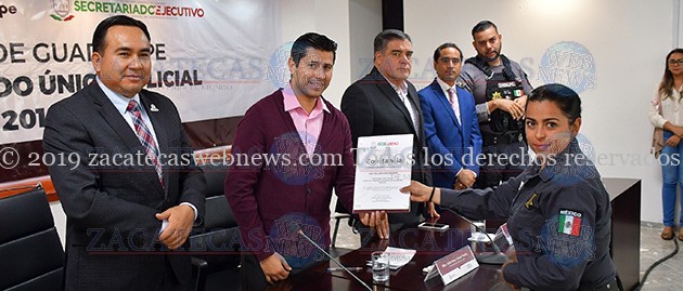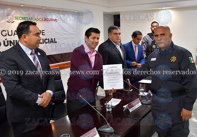 Durante la entrega del CUP, también estuvieron presentes Getsabel Rivera Hernández, Directora del Centro Estatal de Evaluación y Control de Confianza de Zacatecas, Rigoberto Correa Correa, Director Académico del Instituto de Formación Profesional del estado, José Saldívar Alcalde, Secretario de Gobierno Municipal y Efraín Acevedo Ibarra, encargado de la Dirección Municipal de Seguridad Pública.