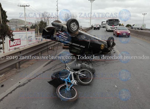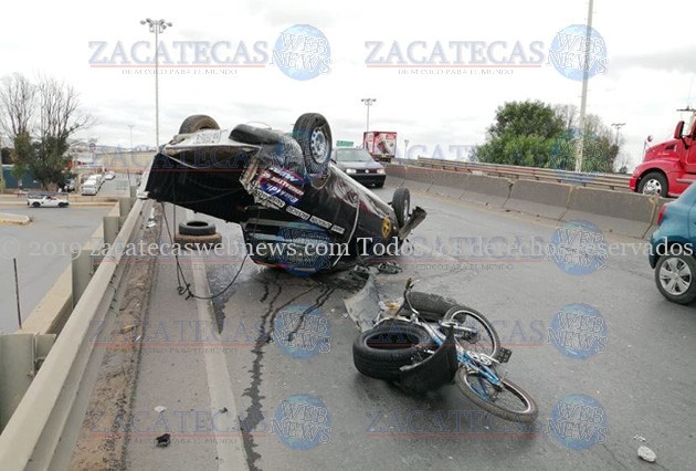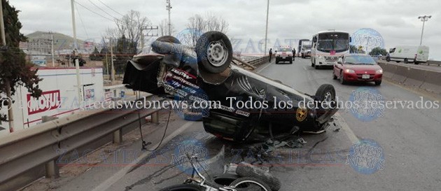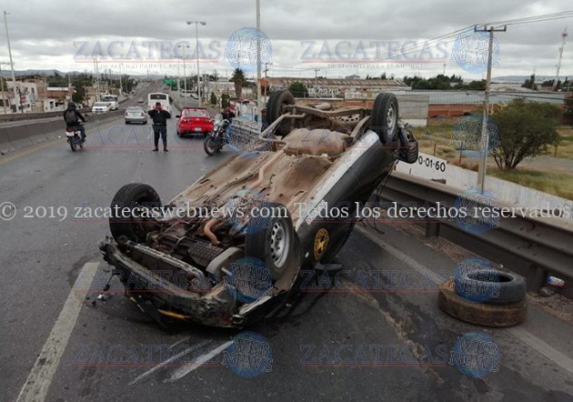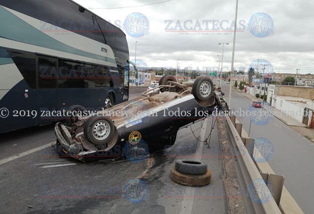 Guadalupe, Zac.- Minutos antes de las 12 horas de este jueves, un conductor que viajaba a bordo de una camioneta modelo anterior, fue blanco de un accidente tipo volcadura cuando circulaba por la vialidad de tránsito pesado.