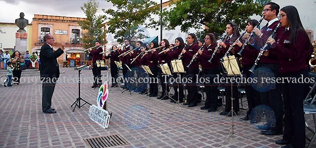Guadalupe, Zac.- En el marco del primer aniversario del nombramiento de Guadalupe como Pueblo Mágico, el Ayuntamiento que preside Julio César Chávez Padilla, a través del Departamento de Turismo, organizó la presentación del grupo de danza Xochipilli y de la Banda Sinfónica del Municipio.