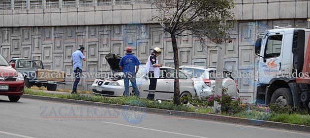 Zacatecas, Zac.- Cerca de las 15 horas se registró un accidente tipo “carambola” entre tres unidades cuando circulaban a una velocidad inmoderada sobre el carril de alta en el bulevar López Mateos con dirección hacia el sur.