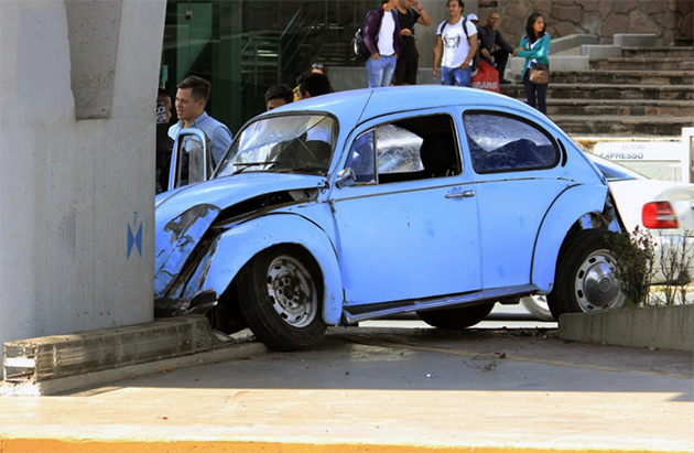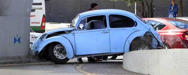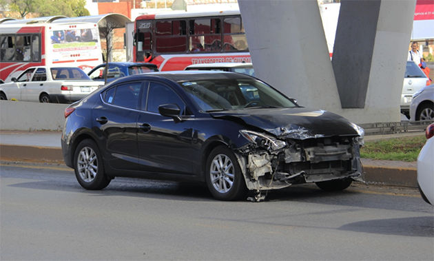 Zacatecas, Zac.– Cerca de las 16 horas de este viernes, ocurrió un accidente por alcance donde un auto Mazda color negro con placas del vecino estado de Aguascalientes, impacto en la parte trasera a un Volkswagen, proyectándolo contra una de las bases sólidas que sostienen el puente vehicular frente a la presidencia municipal de Zacatecas, sobre el bulevar H. De Chapultepec.