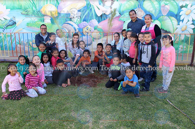 Guadalupe, Zac.– Como parte de las políticas públicas del Plan Municipal de Desarrollo de Guadalupe enfocado en el rubro del medio ambiente y fomentando los valores en la niñez; por instrucción del alcalde Julio César Chávez, se realizó la donación y reforestaron con decenas de diversas especies de árboles en el Jardín de Niños “María R. Murillo” en la colonia Villas de Guadalupe, a través de la Dirección de Desarrollo Rural, Integral y Sustentable, así como del Sistema Municipal para el Desarrollo Integral de la Familia (SMDIF), donde maestros, alumnos, padres de familia y funcionarios, fueron partícipes de esta acción que se enmarca dentro del programa “Adopta un árbol y crece con él”.