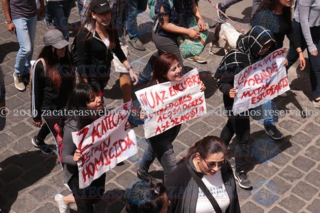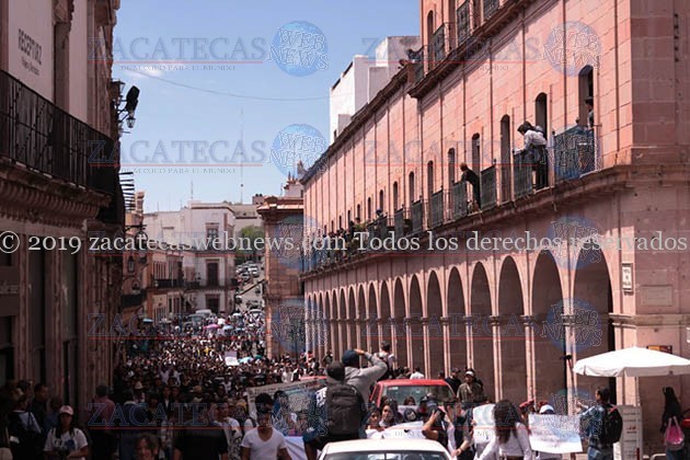 Zacatecas, Zac.- Miles de estudiantes tomaron las calles del centro de la ciudad en protesta por el asesinato ocurrido el día de ayer dentro de las instalaciones de la facultad de leyes de la Universidad Autónoma de Zacatecas.