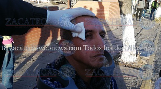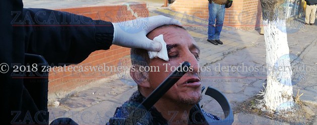 Zacatecas, Zac.– Una persona que usa muletas para caminar, sufrió una caída de su propia altura sobre la acera del bulevar López Mateos siendo atendido por policías municipales y de vialidad quienes lo atendieron de la fuerte herida que se propició arriba de uno de sus parpados.