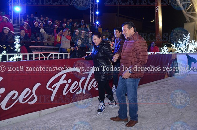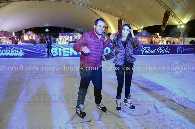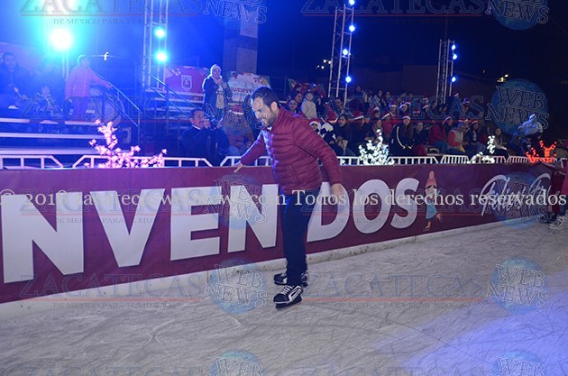 Zacatecas, Zac.- El Alcalde del Municipio de Zacatecas, Ulises Mejía  junto a la legisladora Mónica Borrego, inauguraron la pista de hielo en lo que es la Villa Navideña organizada por la administración Municipal para deleite de chicos y grandes con el objetivo de fomentar los lazos familiares entre las y los zacatecanos.